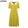 Features:Doll collar five quarter sleeve lantern sleeve dress