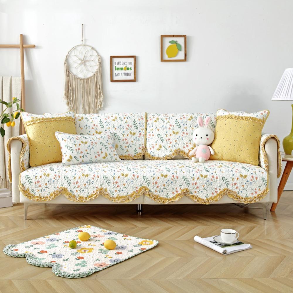 Cotton Printed Slipcover Washable Sofa Cover with Wave Edge Non Slip Full Coverage All Season