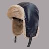 Korean Autumn and Winter Retro Pilot Hat PU Leather Plush Lei Feng Hat Men and Women Riding Warm Ear Protection Ski Hat