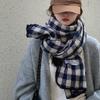 Winter Thickened Green Retro Plaid Scarf Women's Korean Style Student Shawl Warm Neck Warmer