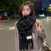 Women's & Couple Korean Style Plaid Scarf Fringed Winter Fleece-Like Cashmere Thickened Warm Versatile Skin-Whitening Shawl Student Neck Warmer