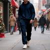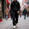 Fleece-lined Hooded Men's Tracksuits, Zipper Drawstring Women's Sports Suit, Solid Color Sporty Two-piece Set