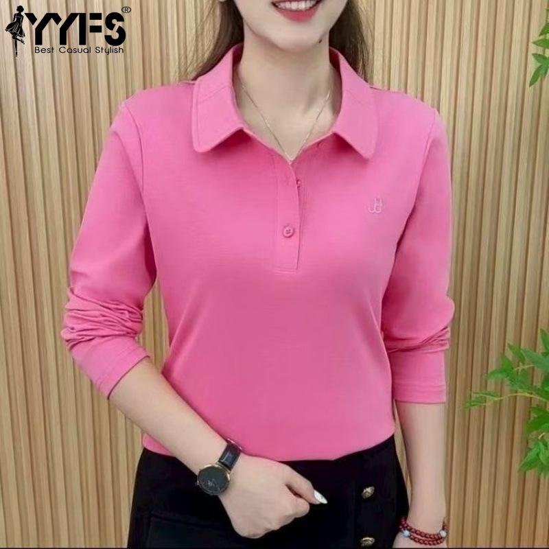 YYFS Women's Fashion Casual Spring Autumn Solid Color Print Long Sleeve POLO Neck Blouses & Shirts
