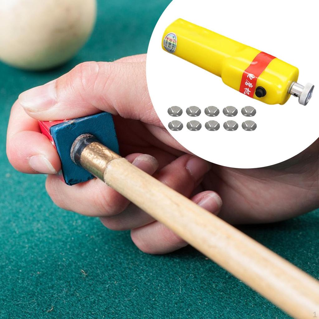- 【10 Sanding Pads】 Electric Pool Cue Tip Repair Tool comes with ten interchangeable grinding discs great for diverse billiard setups
