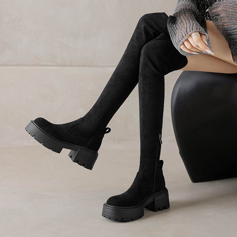 Krazing Pot Microfiber Autumn Winter Shoes Thick Bottom Flat Platform Size 43 Long Boots Zipper Over-the-knee Boots