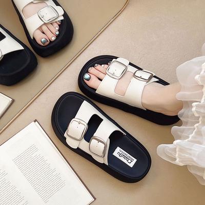 Fashion Thick-soled Fashionable Outdoor Sandals for Women In Spring, New Belt Buckle Casual Slip-on Lazy Flip Flops