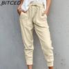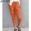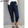 BITCED Summer Women Loose Plus Size Solid Color Simple Lace Up Slim Casual Nine Point Slimming Trousers