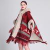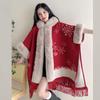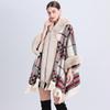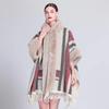 869# Women's Plaid Fleece-Lined Knitted Shawl Cape with Thick Fur Collar