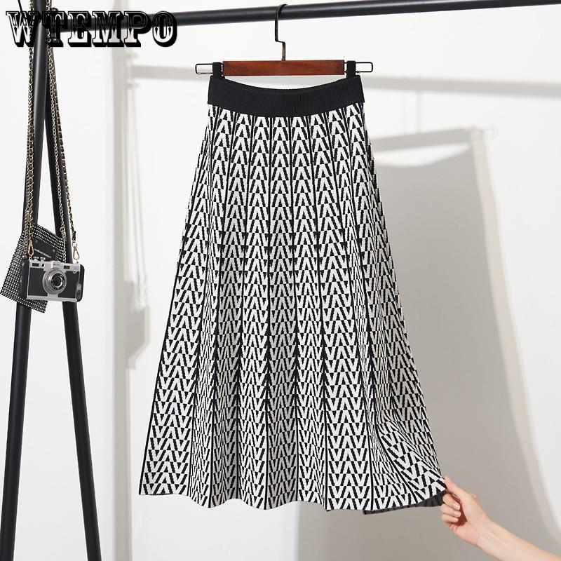 Striped Knitted Half Length Skirt for Women Autumn and Winter Thickened A-line Skirt High Waist Skirt