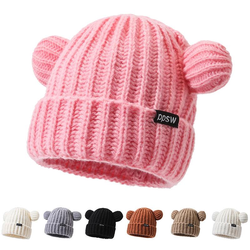 Cute Knitted Hat Korean Version of Bear Ear Wool Hat for Women In Winter Thickened Versatile Warm Ear Protection Hat Showing Small Face