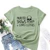 Skull Rose Alphabet Cotton T-Shirt Short Sleeve Round Neck Women 2d Print Tops