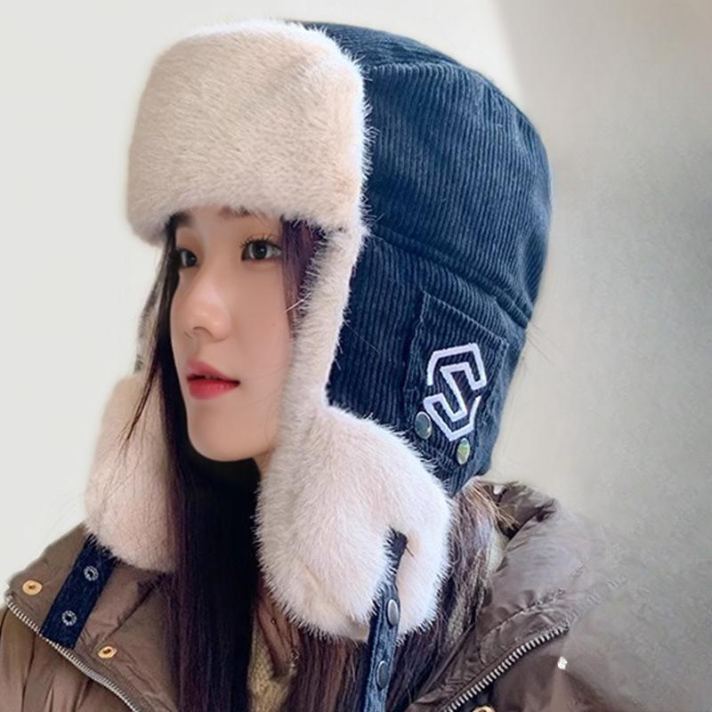 Winter Warm Cotton Hat Ear Protection Windproof Ski Hat Women Outdoor Riding Hat Flying Hat Corduroy Lei Feng Hat Men