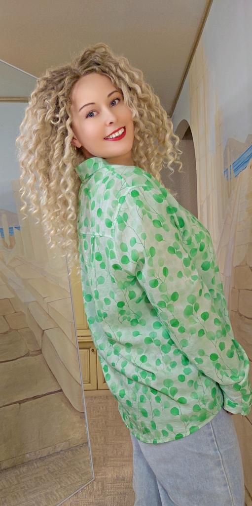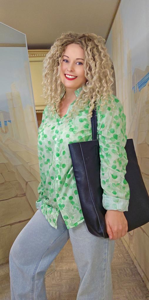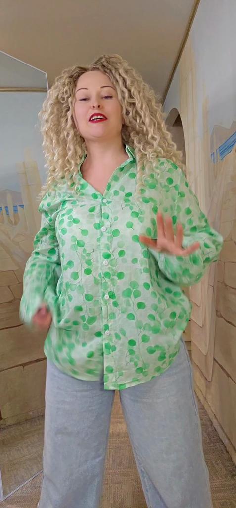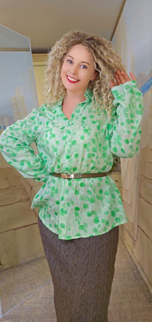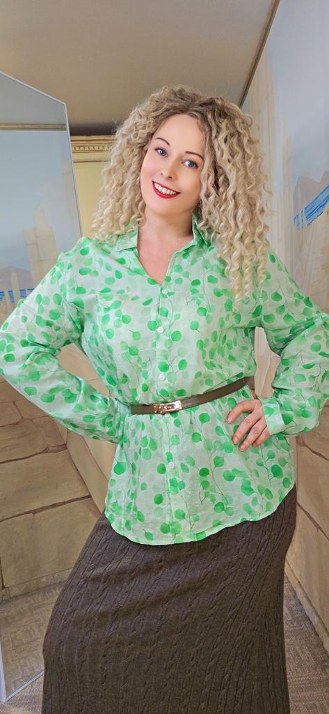 DIMANAF 2025 New Plus Size Women Tops Shirts Tees Green Casual Loose Blouse Autumn Print Cotton Long Sleeve