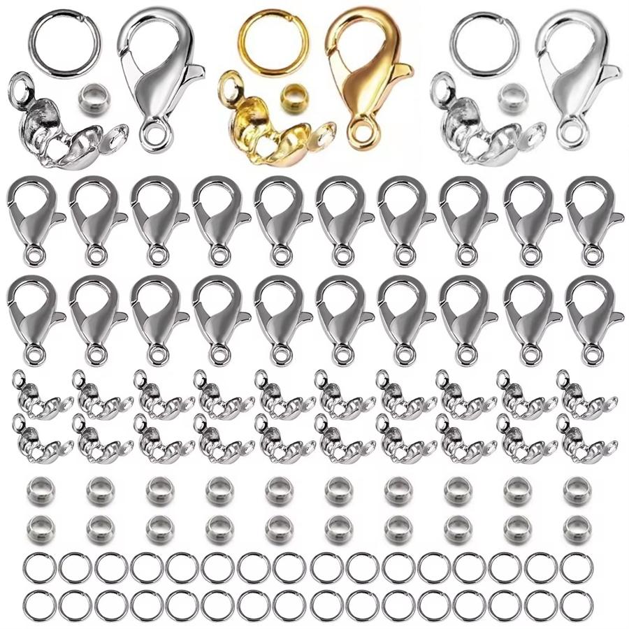 170Pcs/Set Lobster Clasp Jump Rings Connector Clasp Crimp End Beads For Bracelet Necklace Chains DIY Jewelry Making Accessories Set
