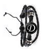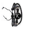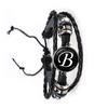 Fashion Simple Initial Alphabet Men's Braided Leather Bracelet Punk Rock 26 Letters A-Z Glass Bracelet Jewelry Gift for Men