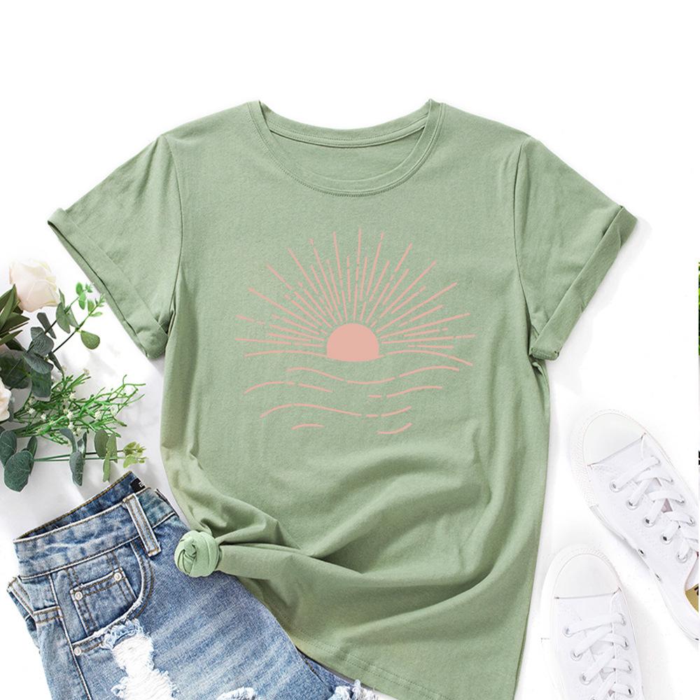 Cotton T-Shirt Short Sleeve Round Neck Women 2d Print Tops