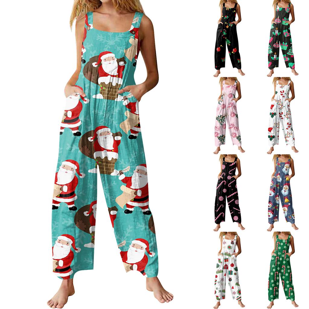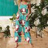 Women's Fashion Christmas Print Casual Retro Sleeveless Button Jumpsuit