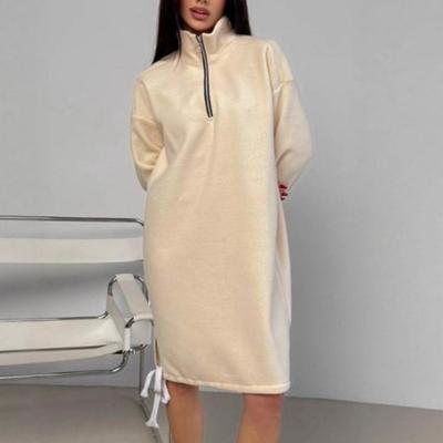 Sweatshirt Dress for Women Casual Long Sleeve Half Zip Mini Dresses Fall Winter Thermal Long Pullover Tunic Top