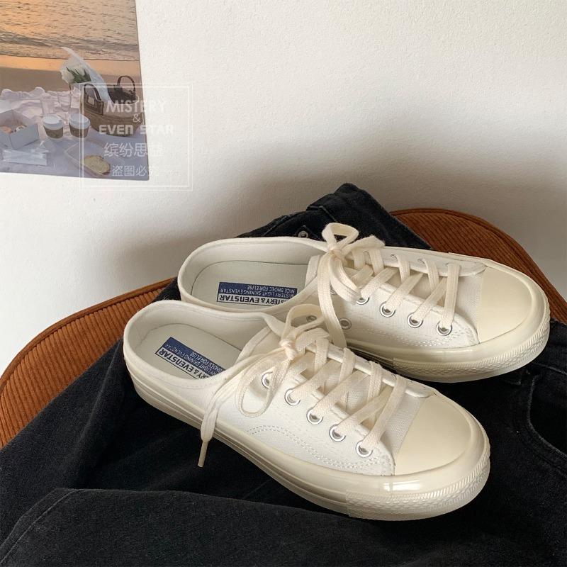 Half Slippers Female Canvas Shoes Student One Pedal Lazy Shoes 203