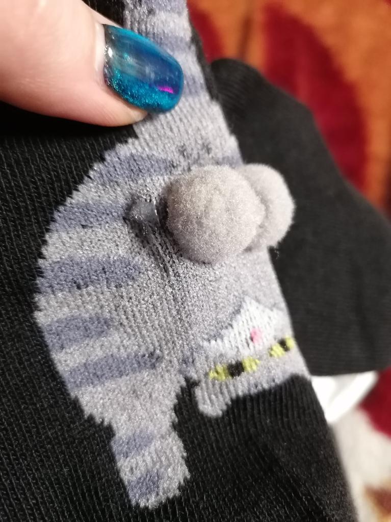 Socks made of thin cheap knitwear. Out of 3 pairs, 2 are larger in size, and 1 is smaller. The cats, as in the picture, decorate. For a rating of 4.