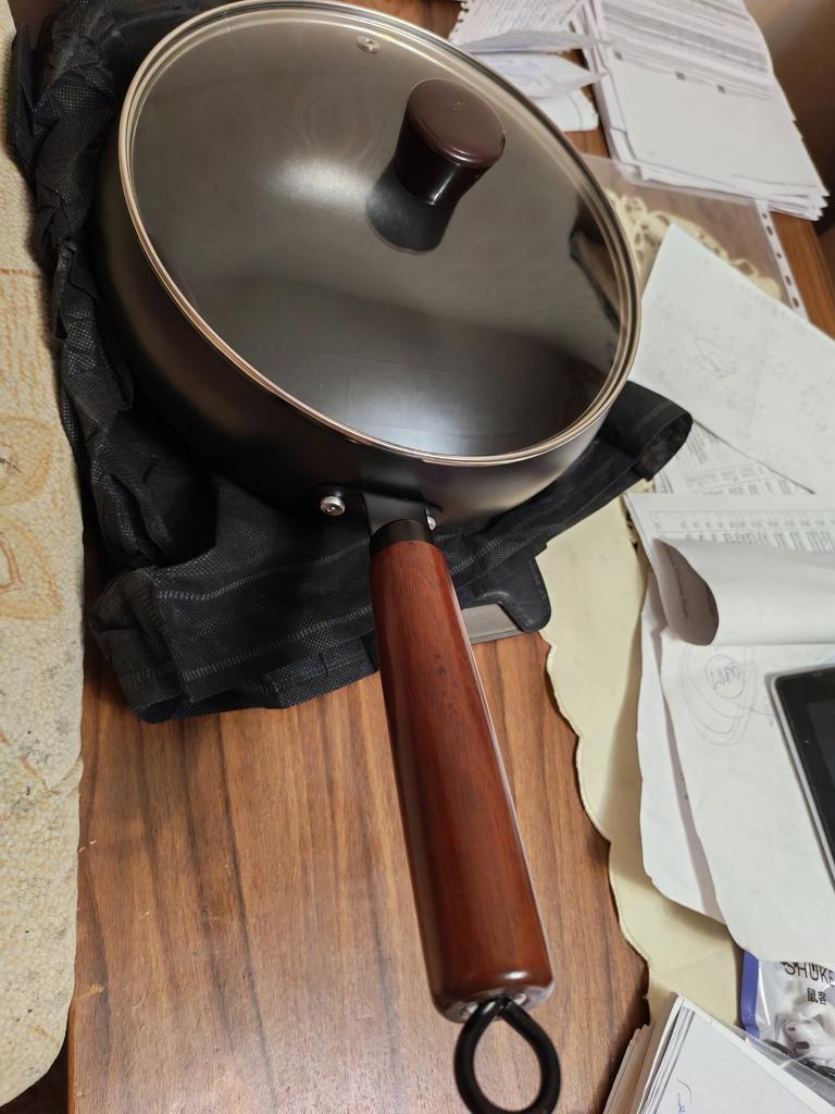 Versatile Culinary Companion: Unleash the thick design cooking pot's multifunctional prowess with 7-in-1 capabilities suitable for various cooking styles. From stir-fries to soups and fried delights, its 4cm depth caters to diverse culinary needs. Lightweight yet robust, it empowers effortless one-handed operation, complemented by a heat-resistant wooden handle for secure grip.