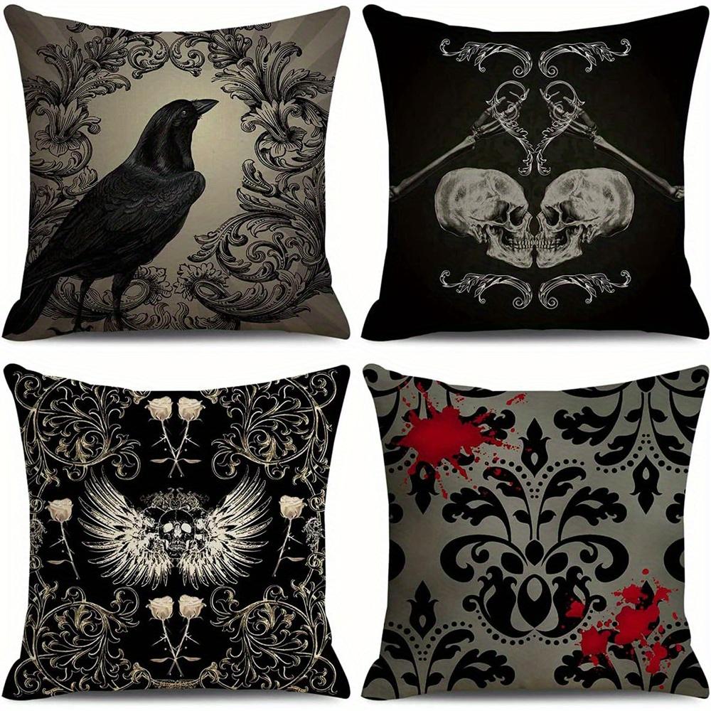 Home Decor Gothic Patterns: Raven, Skulls & Blood Splashes Pattern Cushion Cover Suitable for Sofa Bedroom Car Pillow Cover
