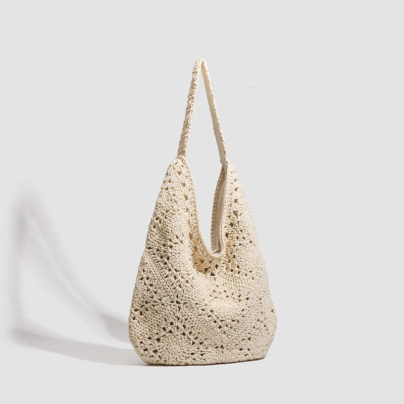 Sunflower Shoulder Bag Large Bag Women's Bag 2025 New Foreign Style Versatile Knitted Hollow Flower Lazy Handbag