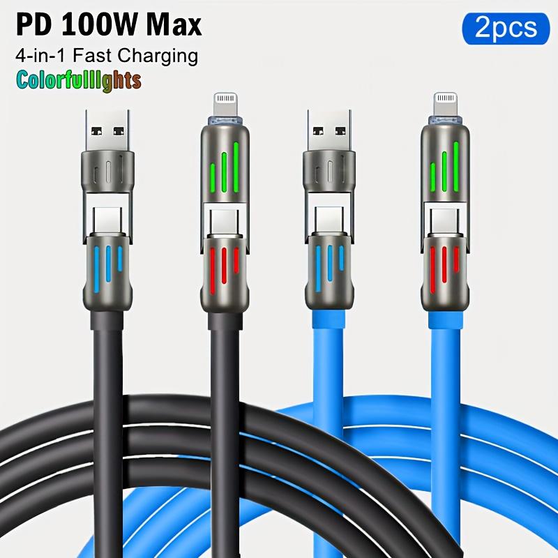 2pcs 4-in-1 100W Max Fast Charging Cable, Multi-Port Charging with Ccolor Light, for IPhone 14/13/12/11Pro Max/XS/XR/8/7/6/iPad, For, Xiaomi, Oppo