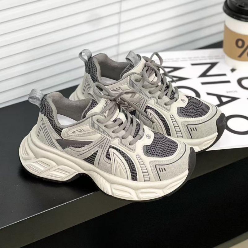 Autumn New Leather Platform Dad Shoes Women's Breathable Versatile Lightweight Non-slip Casual Sports Shoes Tide