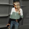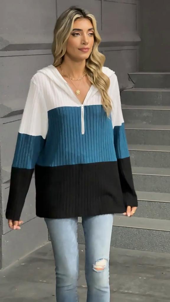 Women's Autumn and Winter New Loose Contrasting Color Spliced Zipper Hooded Long Sleeved Top for Women