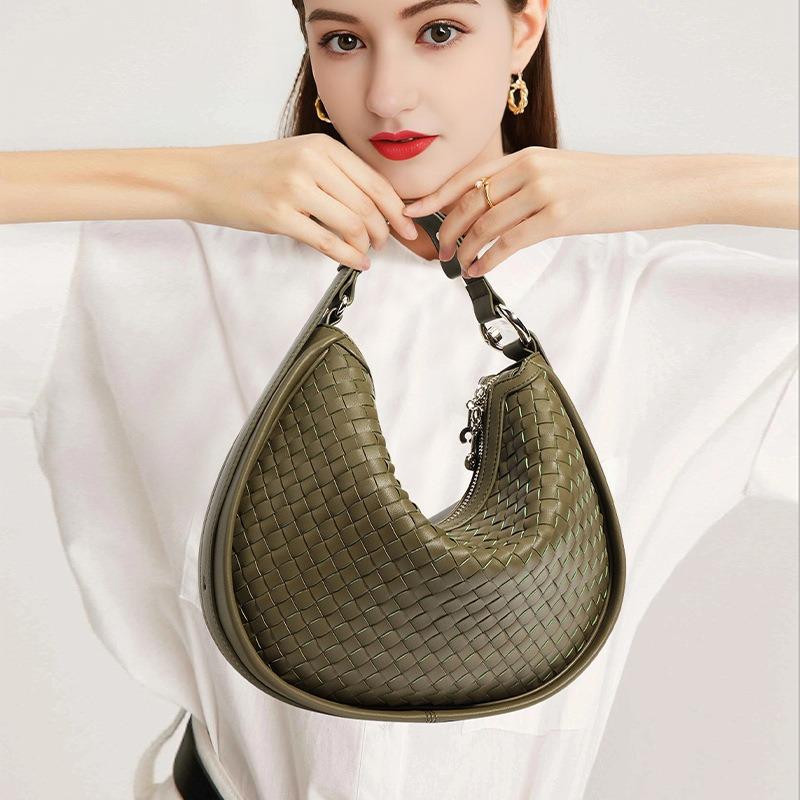 Underarm Crescent Bag, Commuting To Work, Leather, Large-capacity Girls' High-end Shoulder Bag, Handmade Women's Hand-held Woven Bag