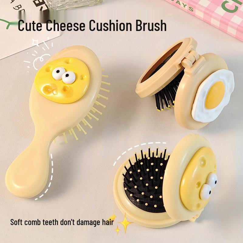 Girlish Foldable Mirror Brush: Cute, Portable Cushion Comb with Fluffy Massage Feature