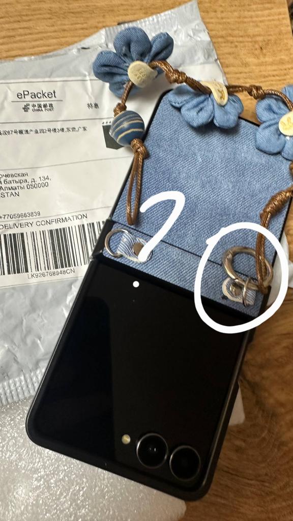 For Samsung Galaxy Z Flip7 5G Case Jeans Cloth Texture TPU+PC Phone Cover with Floral Strap