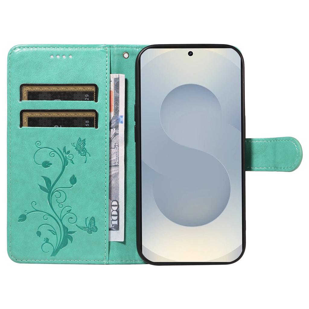 For Samsung Galaxy S25 Edge PU Leather Cases Flower Pattern Wallet Stand Phone Cover with Strap