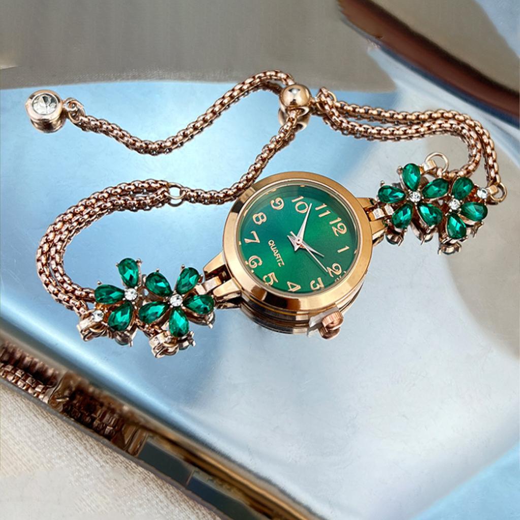 Popular Flower Shaped Diamond Inlaid Leaf Fashionable Women's Watch Digital Women's Pull-out Bracelet Watch