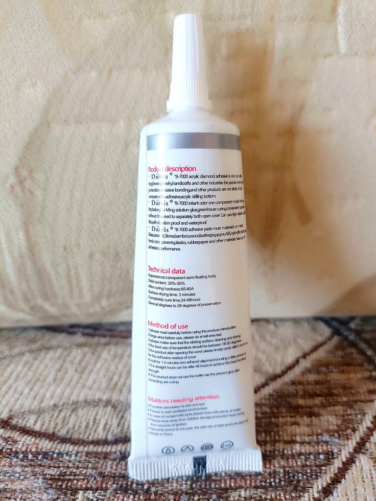 Great glue in a large package - it will be enough for really big projects! :) A friend recommended this glue to me for diamond painting and so far it's working great. It holds very well. I will definitely add a new post after decorating the book cover with rhinestones. I recommend it primarily because of the very convenient nozzle, which facilitates precise gluing, and the pin in the cap actually prevents the outlet from clogging.