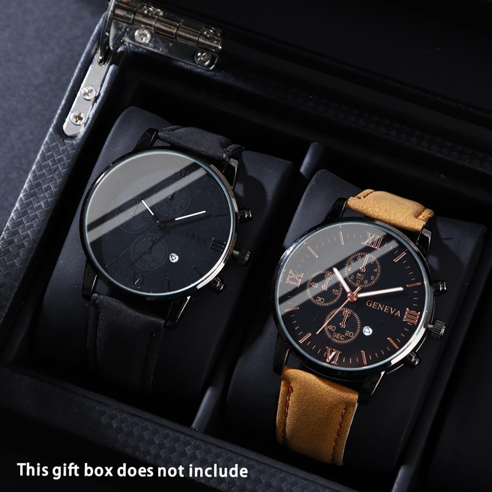 2 Pcs/set Men's Watch Wristwatch Set Casual Sport Men's Watch Set Quartz Pointer Date Watch Set for Holiday Gift Watches Set