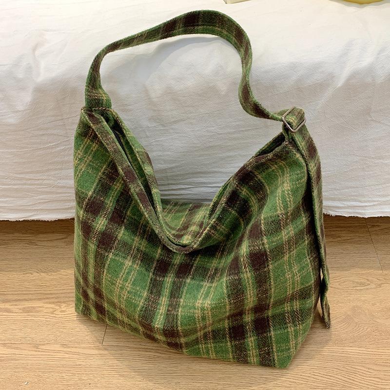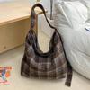 Woolen Plaid Messenger Bag Women's Leisure Commuter Portable Tote Bag Student Class Versatile Shoulder Bag