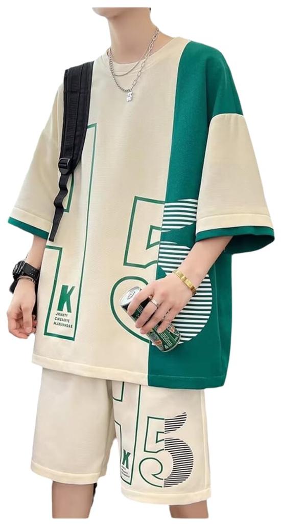 This suit consists of a T-shirt and shorts, and features lettering on the clothing, highlighting the suit's individuality and fashion sense. The T-shirt set is made of soft, skin-friendly material, providing a natural feel and excellent breathability. It provides comfort even on hot days and is sweat-wicking and quick-drying.