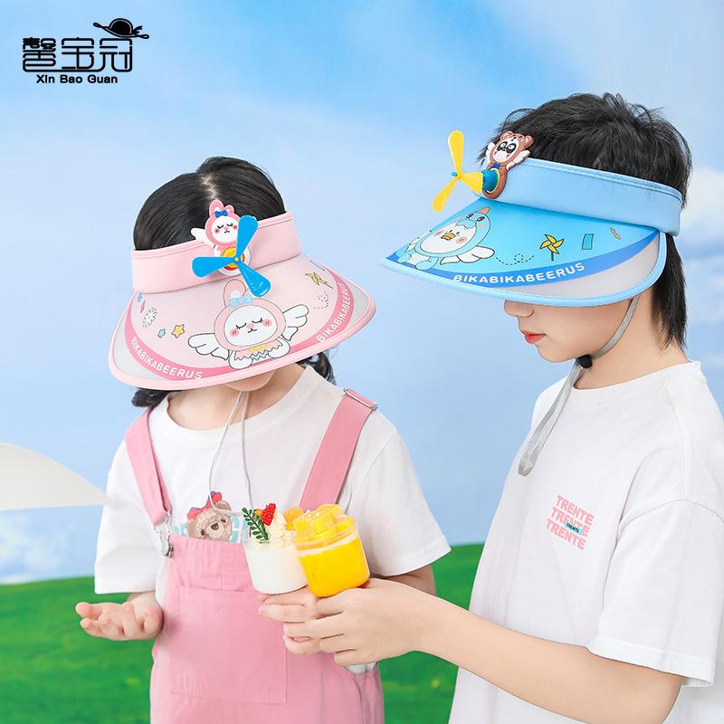 1106 Children's Hats Summer Outdoor Sunshade Sunscreen Hats Boys and Girls Cartoon Big Eaves Windmill Empty Top Sun Hat