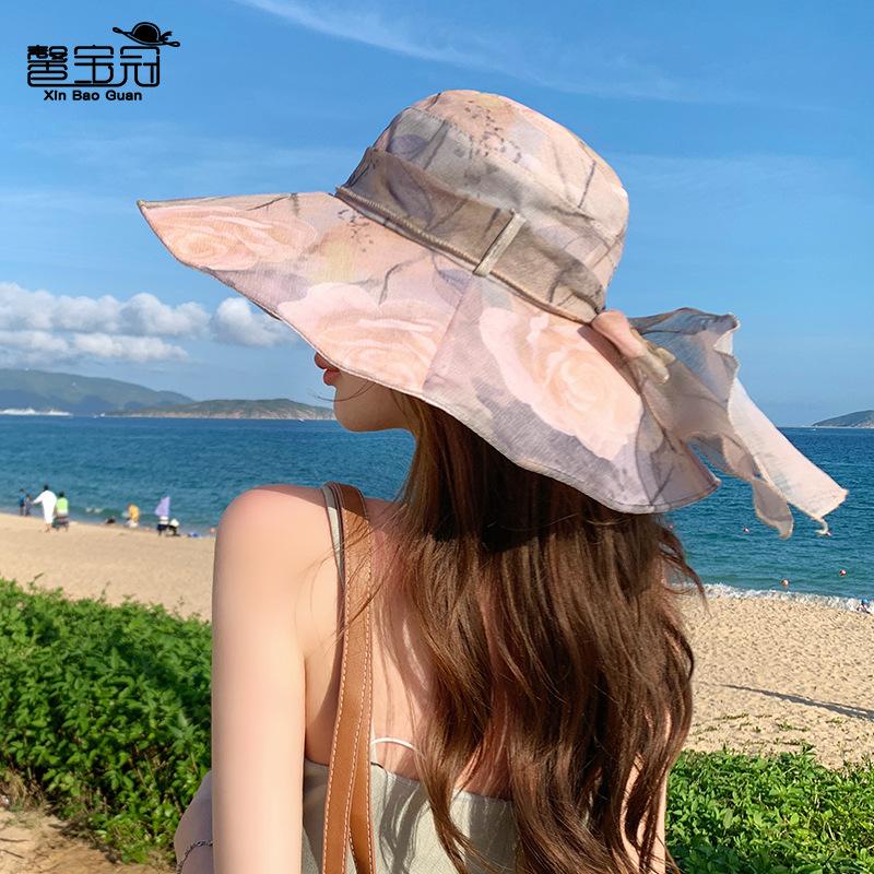 8453 New Spring and Summer Sunshade Bucket Hat Fashionable Breathable Sunscreen Hat Medium Women's Large Brim Sun Hat