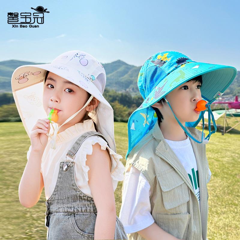 Children's Sun Hat Summer Cartoon Cute Boys and Girls Outdoor Sun Protection Sun Hat Big Brim Shawl Bucket Hat
