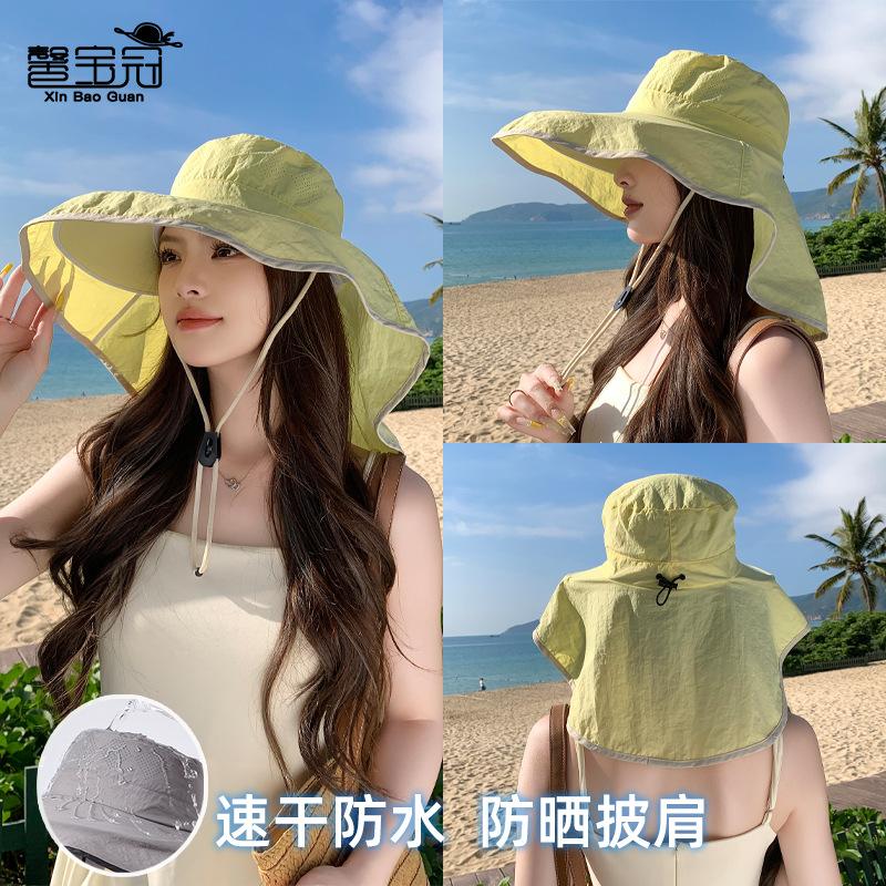 Summer Outdoor Sun Hat Children Large Brim Shawl Neck Protector Quick Drying Waterproof Bucket Hat Mountaineering Fishing Sun Protection Hat