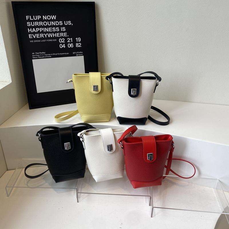 Simple Small Bag Women's New Fashion Lychee Pattern Bucket Bag Casual Trend Shoulder Messenger Women's Bag