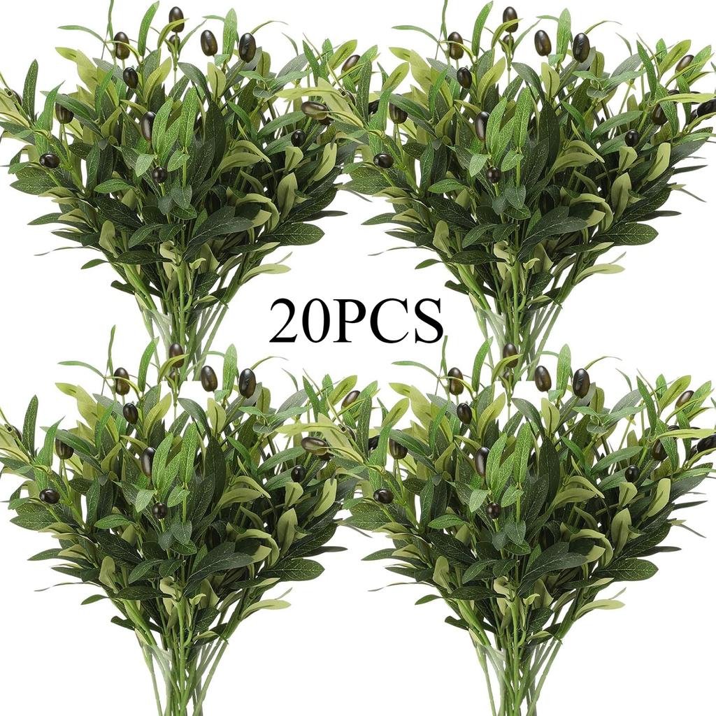 20 Pcs 18 Inch Artificial Olive Branches for Vases Fake Olive Branches Greenery Leaves for Tabletop Home Office Decoration