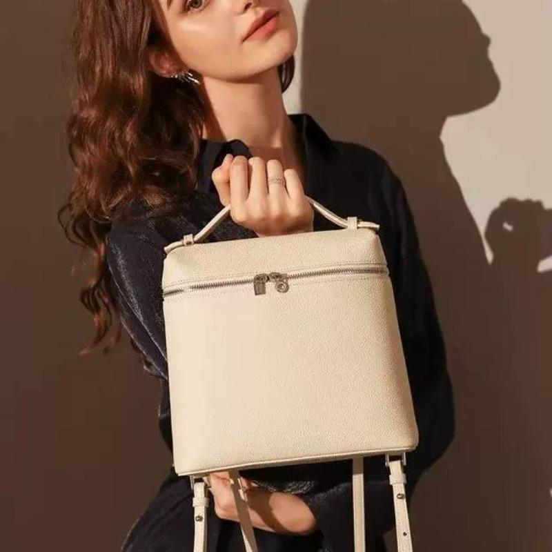 Leather Double Shoulder Messenger Bag 19 First Layer Cowhide Box Bag Lunch Box Bag Fashion Versatile Temperament Simple Bag Women