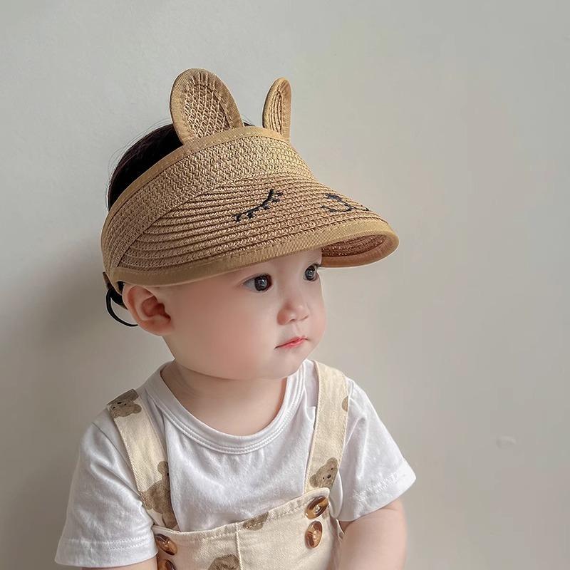 Children's Hats Summer Sunscreen Boys and Girls Straw Hats Empty Top Cute Super Cute Sunshade Sun Hat Baby Thin Hat