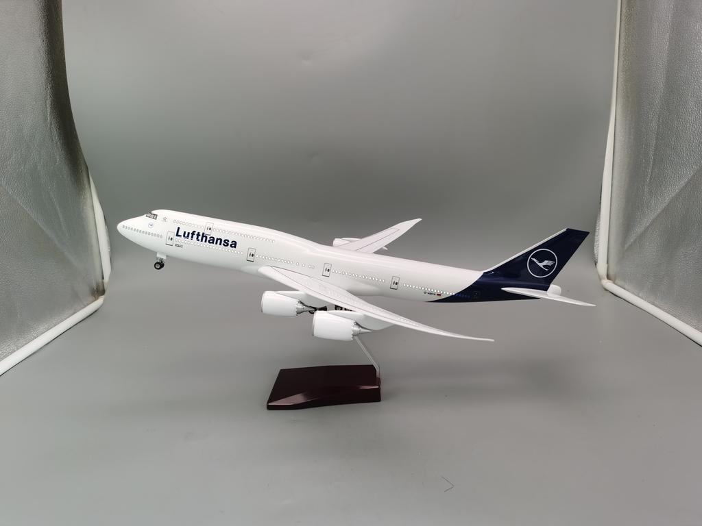 1/150 Airline 747 Plane Model B747 Lufthansa Airplane Model Light and Wheel Landing Gear Plastic Resin Plane Model Decoration