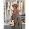 DAFIFY Women's Fashion Summer Spring Solid Color Print Sleeveless V-Neck Loose Waistline Casual Dresses