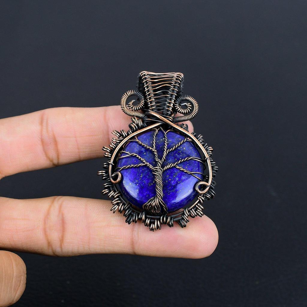 Lapis Lazuli Pendant Handmade Gemstone Jewelry, 999 Copper Wire Wrapped Pendant ,Unique Design Jewelry Pendant